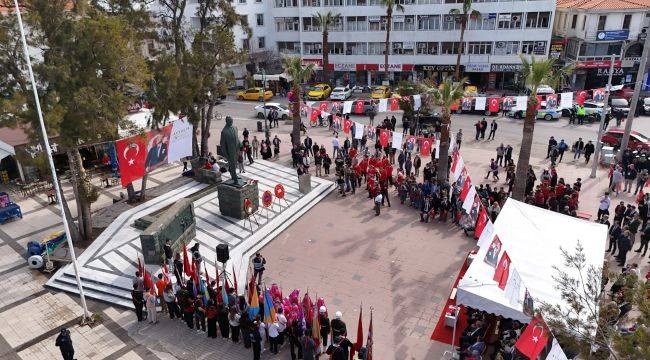 Atatürk’ün ilçeye giriş yaptığı güzergâh üzerinden gerçekleştirilen yürüyüşe; Ayvalık Kaymakamı Hasan Yaman, Ayvalık Belediye Başkanı Mesut Ergin, eşi Canan Ergin, gaziler ve şehit aileleri, siyasi parti ve sivil toplum örgütlerinin temsilcileri ile öğrenciler katıldı. Cumhuriyet Meydanı’nda gerçekleştirilen tören, saygı duruşu ve İstiklal Marşı ile devam etti. Çelenk takdimlerinin ve vatandaşların Atatürk anıtına çiçek sunumunun ardından Ayvalık Belediye Başkanı Mesut Ergin, Cumhuriyet Meydanı’nda günün anlam ve önemine ilişkin konuşma yaptı.