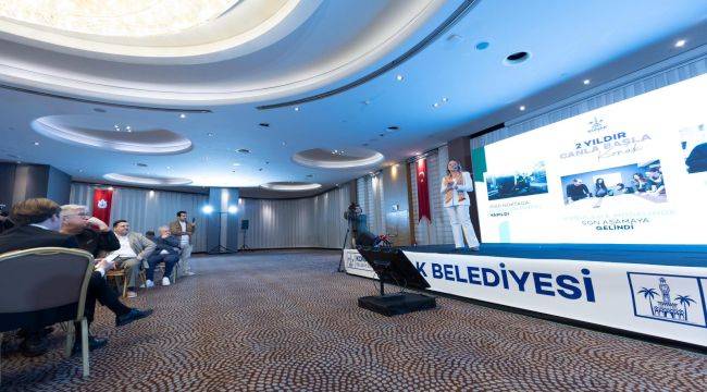 Başkan Mutlu kültür, sanat ve spor alanındaki çalışmaları anlatarak sürdürdüğü konuşmasında, “Bütçenin azlığına rağmen kültür ve sanat etkinliklerimizi düzenliyoruz. Konak deyince kültür ve sanat akla geliyor. Biz bunu korumaya çalışıyoruz. Kendi olanaklarımızla, kendi personelimizle 354 etkinlikte 124 bin vatandaşa ulaştık. Kendi yerel sanatçılarımızla yol yürüyelim istedik. Darağaç Kolektifiyle bir araya geldik ve genç sanatçıları destekledik. Konak Modern’in bir katını da onlara tahsis ettik. Aynı mahallede hem sanat üretiyor hem sergiliyorlar. Sanatla ilgili kurslarımız da devam ediyor. Açık havada spor etkinliğimiz, modern halı sahalarımız, macera parkımız, farklı dallarda spor kurslarımız, Konak deyince akla gelen kadın futbol takımımız devam ediyor” ifadelerine yer verdi.