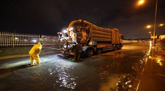 İzmir Büyükşehir Belediyesi, yağış öncesinde AKOM koordinasyonunda hazırlanan kuvvetli yağış, sel ve fırtına hazır müdahale planını devreye aldı. Bu kapsamda İtfaiye, İZSU, Fen İşleri, Yol Yapım, Park ve Bahçeler, Zabıta ve ilgili tüm birimlerde ekip, araç ve personel görevlendirmesi yapıldı. Riskli noktalarda önleyici tedbirler alınırken, ihbarlara hızlı müdahale edilebilmesi amacıyla ekipler kritik bölgelerde önceden konuşlandırıldı. Gece boyunca başta ana arterler olmak üzere kent genelinde yol temizlik ve kanalizasyon temizlik çalışmalarına devam edildi. Yağıştan etkilenen bölgelerde biriken su ve atıklar temizlenirken, taşkın riski bulunan alanlarda da kontroller gerçekleştirildi.