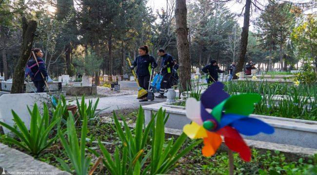 İzmir Büyükşehir Belediyesi, Ramazan Bayramı öncesinde kent genelindeki mezarlıklarda bakım ve temizlik çalışmalarını hızlandırdı. 30 ilçede bulunan toplam 2 bin 500 parselde yürütülecek çalışmalar Gaziemir’den başlatıldı.