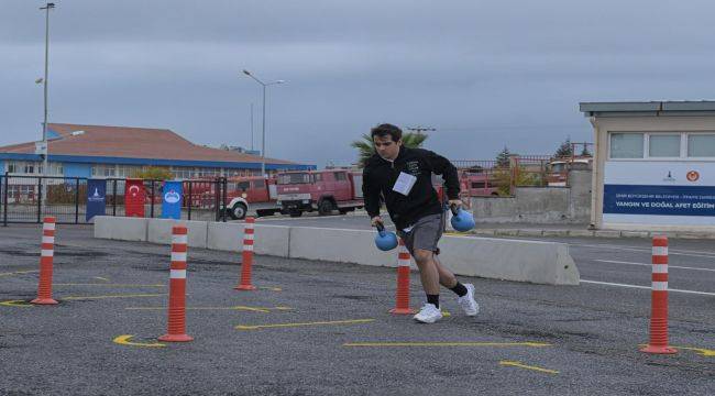 Uygulamalı sınav önce 100 metre engelli koşusu ile başladı. Ardından ağırlık kaldıran adaylar, 20 metrelik tünelden geçti. Bir dakika şınav ve mekik çektikten sonra ise sözlü sınava katıldı. İzmir Büyükşehir Belediyesi Genel Sekreter Yardımcısı İsmail Mutaf ile İzmir Büyükşehir Belediyesi Genel Sekreter Yardımcısı Çağatay Güç’ün de yer aldığı sözlü mülakatta, adaylar soru kitapçığını kura ile kendileri seçti. Adaylara Türkiye Cumhuriyeti Anayasası, Atatürk İlkeleri ve İnkılap Tarihi, 657 sayılı Devlet Memurları Kanunu, mahalli idarelerle ilgili temel mevzuat konularından sorular yöneltildi.